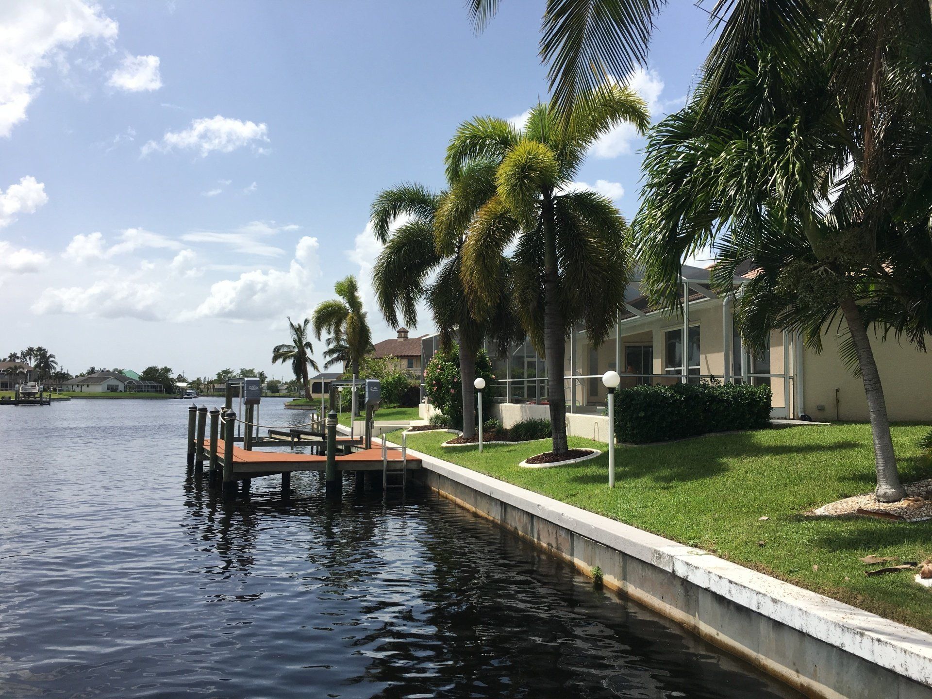 Unser Grundstück hat einen direkten Zugang zum Golf von Mexiko, wobei die Fahrzeit zum Caloosahatchee-River nur ca. 20 Min. beträgt. Von unserem Garten in Südlage genießen Sie den außergewöhnlich schönen Blick auf den Delbert-Kanal in unmittelbarer Nähe des Lake Cat Cay.